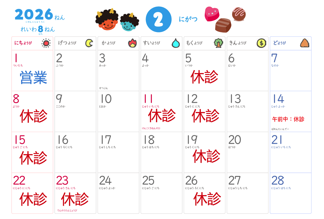 12月28日㈰ 午前中のみ診療(9:00-12:00)